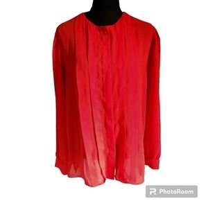 Diane Von Furstenberg Vintage Red Pleated Button Semi Sheer Blouse Plus size 14