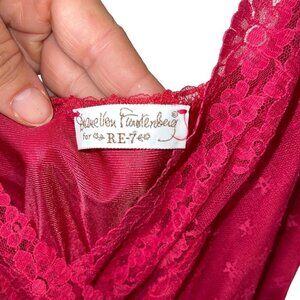 Diane Von Furstenberg Vintage Womens Nightgown Size Small Red Lace V Neck