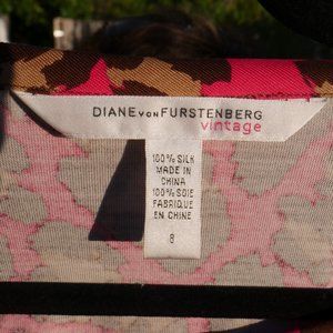 Vintage DVF Gaby dress. Diane von Furstenberg vintage dress with pink, light brown, and dark brown leopard print. The material is 100% silk jersey. The leopard print is gorgeous and one of the most sought after prints. Excellent preowned condition.