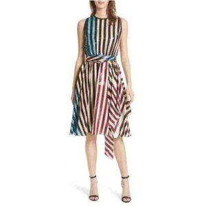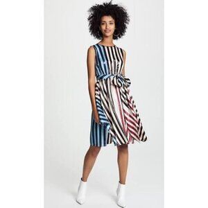 Diane Von Furstenberg Waist Tie Draped Dress Carrington Stripe in pacific/black