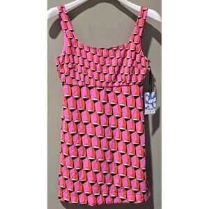 Diane Von Furstenberg Women Size 2 XS Pink Modern Geo Print Mini 90s Shift Dress