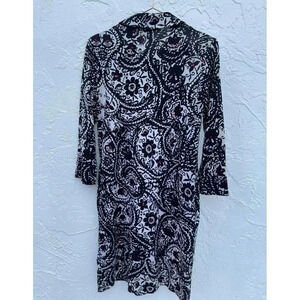Diane Von Furstenberg Womens 3/4 Sleeve Collared Silk Shift Dress Black Floral 4