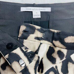 Diane Von Furstenberg Womens Black Animal Print Mary Mikado Pants Size 10