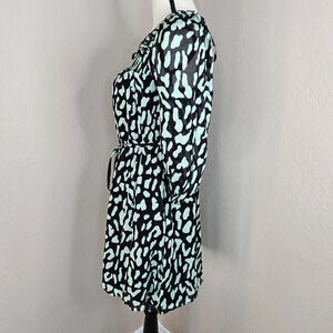 Diane Von Furstenberg Womens Black & Green Animal Print Mini Dress Sz XXS