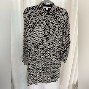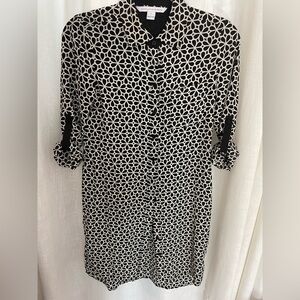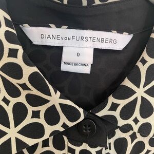 Diane Von Furstenberg Women's Black White Floral Button-Up Shirt Dress Size 0