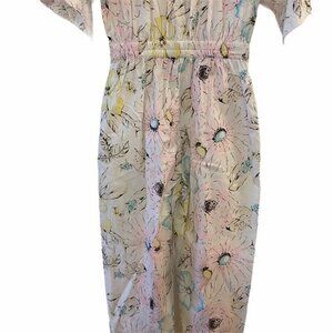 Diane Von Furstenberg Womens Jumpsuit Romper White with pink and blue Floral Pockets Cotton Vintage 10