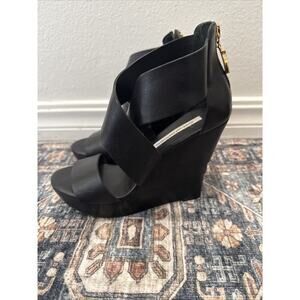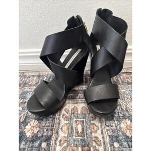 Diane Von Furstenberg Womens Leather Strappy Zip Up Wedge Sandals Black Size 6.5