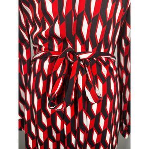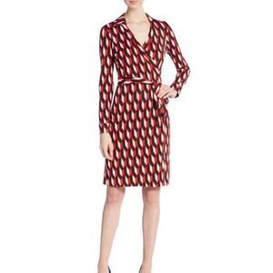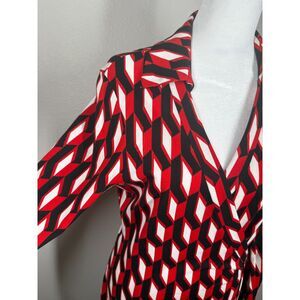 Diane Von Furstenberg Womens Red Geometric Wrap Dress Sz 10 Jeanne Silk Career