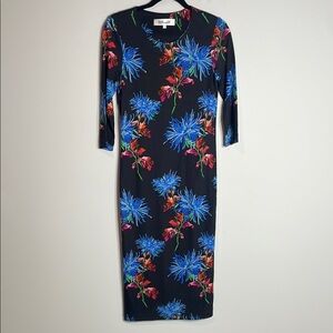 Diane Von Furstenberg | Women’s Silk Floral Black Dress Size Small 3/4 Sleeve