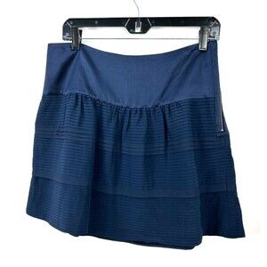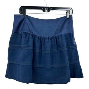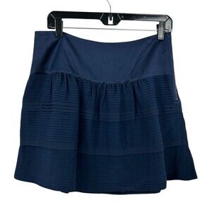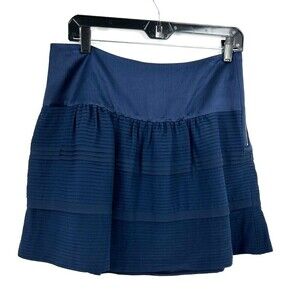 Diane Von Furstenberg Womens Sz 8 Navy Blue 100% Silk Mini Skirt Tiered Lined T