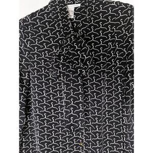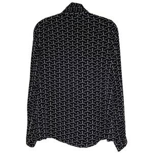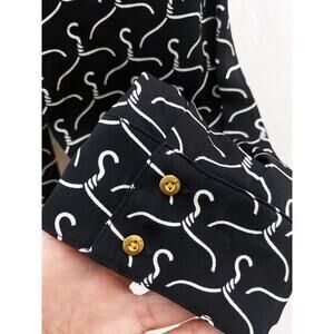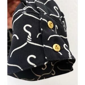 Diane Von Furstenberg Women's Bow Tie Collar Silk Blouse Hanger Print Black White Hard To Find Long Sleeve