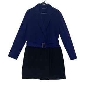 Diane Von Furstenberg Women’s Wool Trench Coat Jacket Size 8 Black Purple pockets Luxury Belted Dressy Preppy Business Sophisticated Fashion