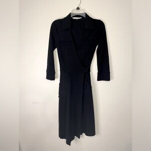 Diane Von Furstenberg Wool V Neck Wrap Black Midi Dress Size 4 Classic Office