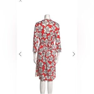 Diane Von Furstenberg Wrap Dress Tie Pink white graphic floral V neck 12