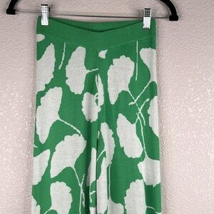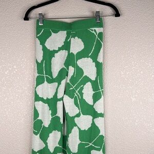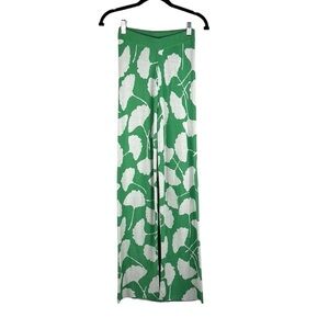 Diane Von Furstenberg X Target Green & White Knit Floral Wide Leg Pants Size XXS