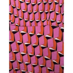 Bold, bright, and so DVF. This Diane von Furstenberg sleeveless A-line mini dress features a geometric cube print in pink, orange & black, with a flattering scoop neckline + empire waist. Perfect for brunch, weddings, or date night. Designer summer dress, Size 6. Excellent condition.