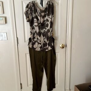 Diane Von Furstenberg X-L Dark loden green silk pants with stretch oversized