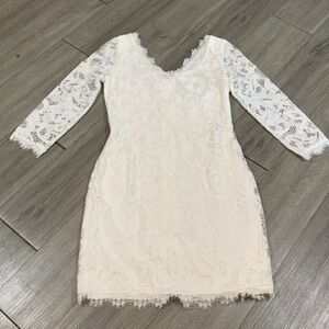 'Diane Von Furstenberg Zarita' Lace White Sheath 3/4 Sleeve Dress size 4