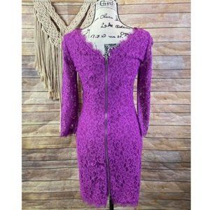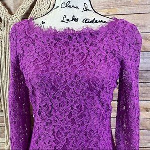 Diane Von Furstenberg | ’Zarita’ Magenta Lace Bateau Neck Scalloped Trim Dress