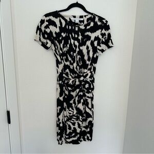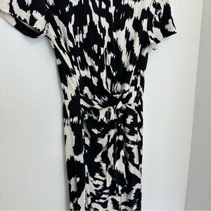 Diane Von Furstenberg Zoe Dress Short Sleeves Black White 100% Silk Size 8 Women