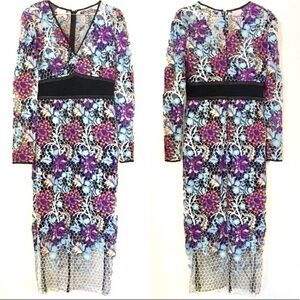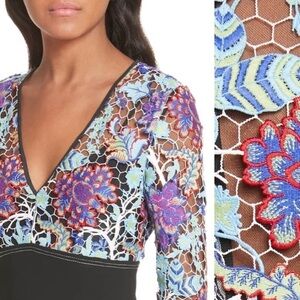 Diane Von Furstenberg exquisite multicolor guipure lace long sleeve midi dress