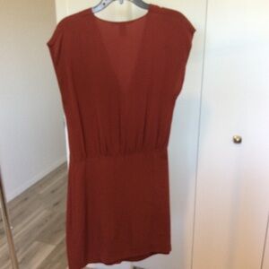 Diane Von Furstenberg silk dress, burgundy/brown color, good used condition, hook & eye needs to be tightened, a small mark that will probably come out with dry cleaning.