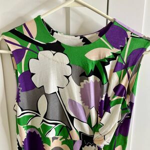 Diane Von Furstenberg sleeveless Green And Purple Floral Pullover Dress Size 2