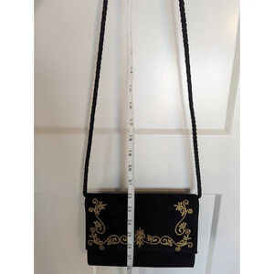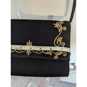 This designer bag will elevate your attire for any formal event. The black and gold design is a must-have. The label is beginning to peel slightly on the edges, but that is vintage for you.