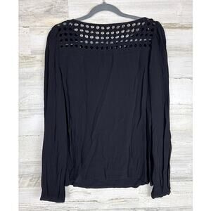 Diane Von Furstenberg women's 4 black eyelet long sleeve blouse boho viscose