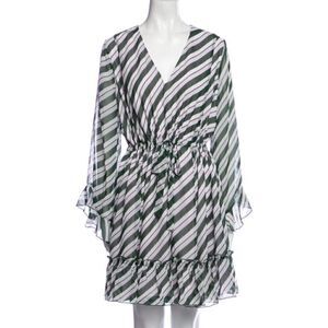 Diane Von Furstenberg Harlene chiffon green and white striped knee length dress