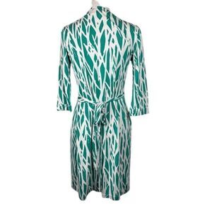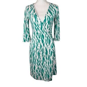 Diane Von Furstenberg Vintage Jeanne New Julian 100% Silk Jersey Wrap Dress Twigs Green Print Size 10. Excellent condition. See photos for details and unstretched measurements. View my closet to add other items and bundle to save with one shipping fee! most iconic wrap silhouettes, made from our ultra-soft, signature silk jersey. True wrap, 3/4 sleeve, soft silk jersey mini dress.