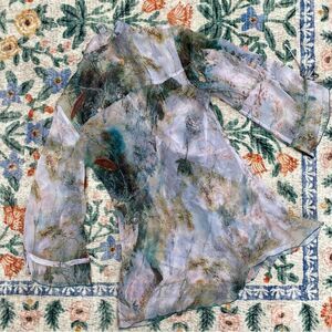 Diane Von Furstenberg Sheer Silk Blouse Size 8 all over print
