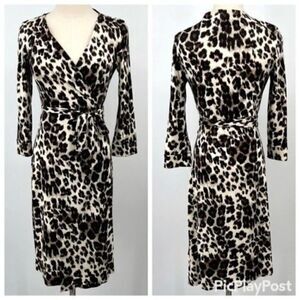 Diane Von Furstenberg classic wrapdress sz 4 BoxI cheetah print 3/4 sleeves