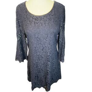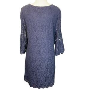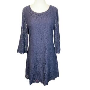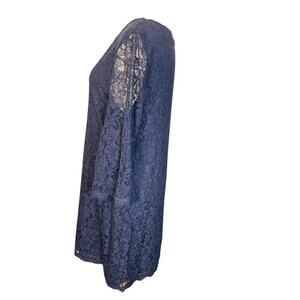 Diane Von Furstenberge Lace Dress Scoop Neck Eyelash Fringe Size 14 Stretch Navy