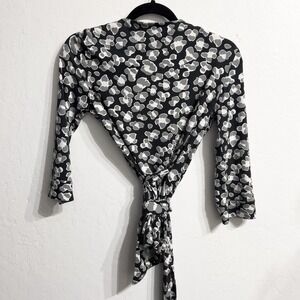 Diane Von Furstenburg Animal Print Leopard Wrap Jersey Top 2 Black Gray