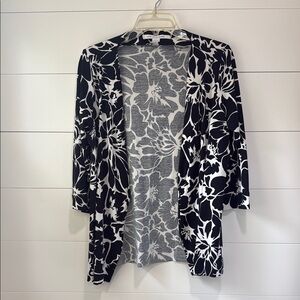 Diane Von Furstenburg Black White Floral Open Cardigan Silk Blend Sweater 12