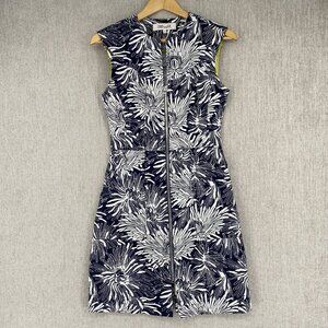 Diane Von Furstenburg Dress 4 Black Sheath Flower Print Fitted Bodycon Full Zip