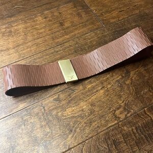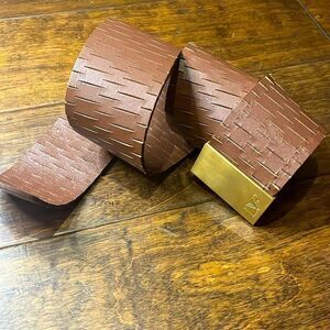 Diane Von Furstenburg Kerry Perforated Brown Leather Wide Brass Plate Belt