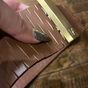 Little crinkling if leather from normal wear, but leather is not peeling, as shown.