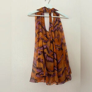 Diane Von Furstenburg Palace Tiger Lavender 100% silk top size 6