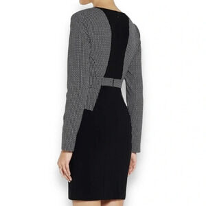Black and off-white stretch-crepe. Concealed hook and zip fastening at back.