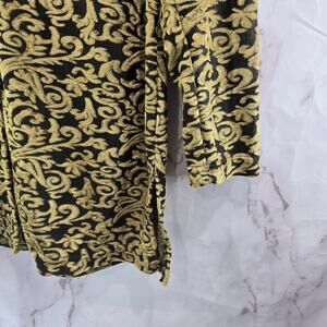 Diane Von Furstenburg Shirt Womens Medium Black Gold Velvet Button Long Sleeve