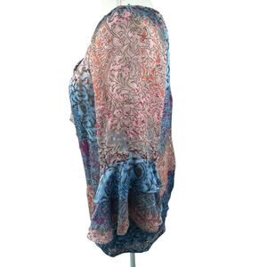 Diane Von Furstenburg Women's Silk Blue Pink Peelo Blouse in Size 4 Sheer Chiffon