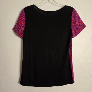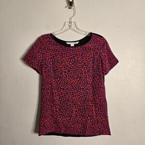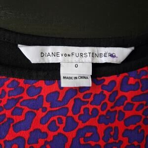 Diane Von Furstenburg Silk Mixed Media Leopard Print Short Sleeve Blouse 0 Edgy