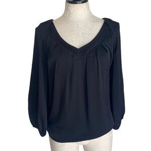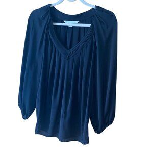 Diane Von Furstenburg Womens Top Size 4 Black V Neck Long Sleeve Casual