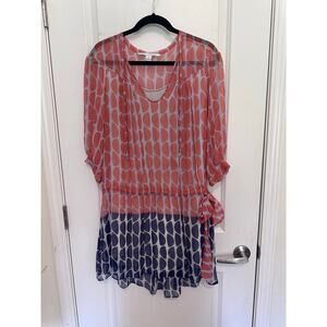 Diane Von Furstenburg Women’s sz 4 Coral and Navy Geometric Flowy Shift Dress