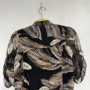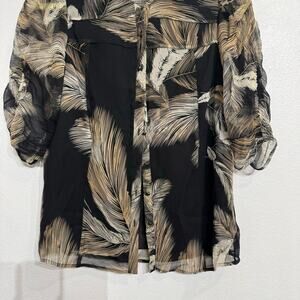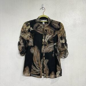 Diane Von Furtensberg Black Palm Print Button Down Blouse Sz 0