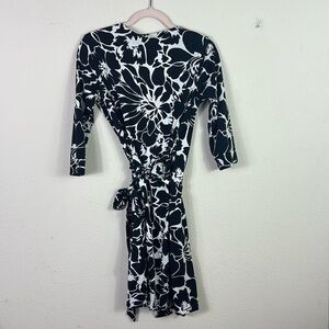 Diane Von Furtstenberg Julian Dahlia black white cotton/silk wrap dress sz 8