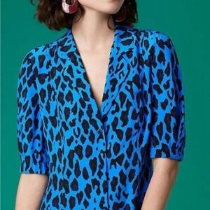 Diane Von Fustenberg Lily Cinch Sleeve Midi Dress in Blue Leopard Print Size 0. 100 percent silk