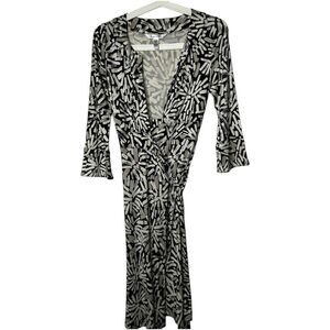 Diane Von Fursteberg Black Cream All OVer Print Silk Wrap Mini Dress Size 2